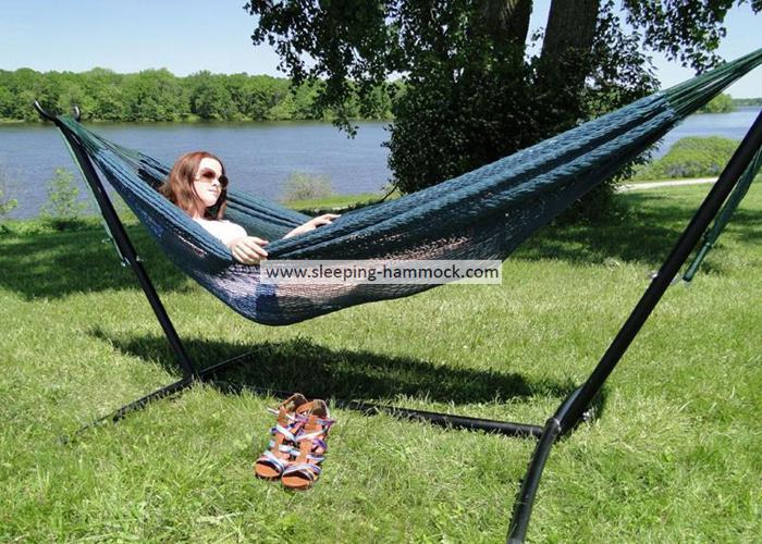 Big Pool Foldable Green Thick String Mayan Hammock Hand Woven With Stand 55 X 84 Inches Images |